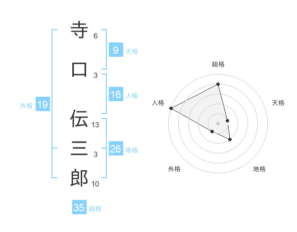 寺口 伝三郎さんを姓名の画数から五運を鑑定
