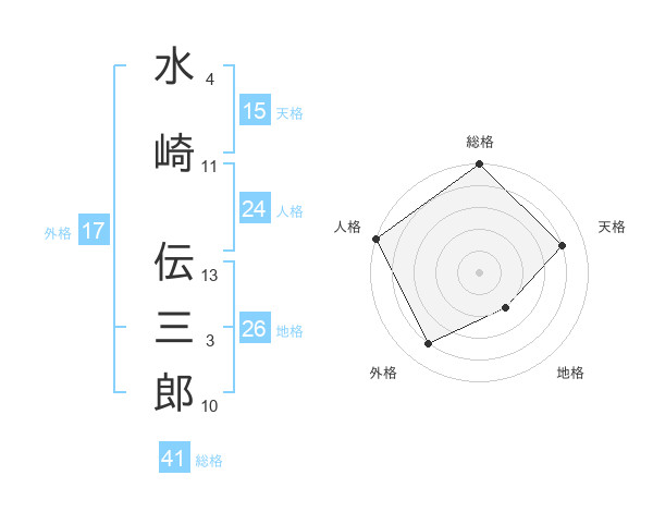 水崎 伝三郎さんを姓名の画数から五運を鑑定