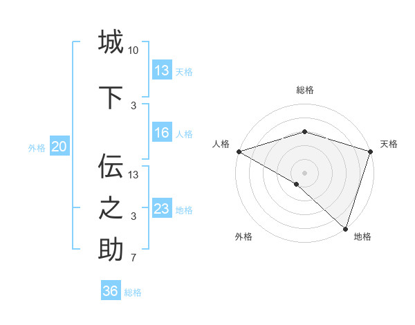 城下 伝之助さんを姓名の画数から五運を鑑定