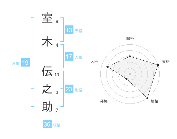 室木 伝之助さんを姓名の画数から五運を鑑定