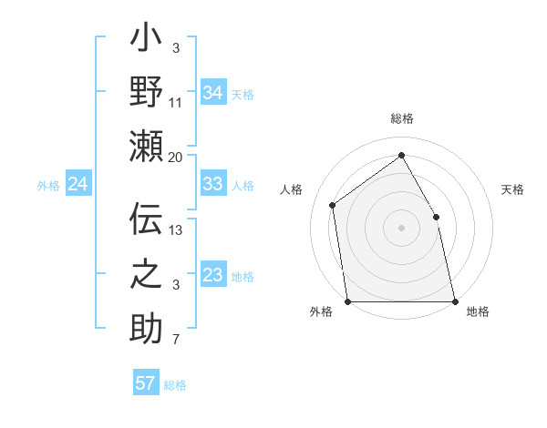 小野瀬 伝之助さんを姓名の画数から五運を鑑定