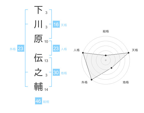 下川原 伝之輔さんを姓名の画数から五運を鑑定