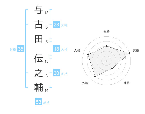 与古田 伝之輔さんを姓名の画数から五運を鑑定