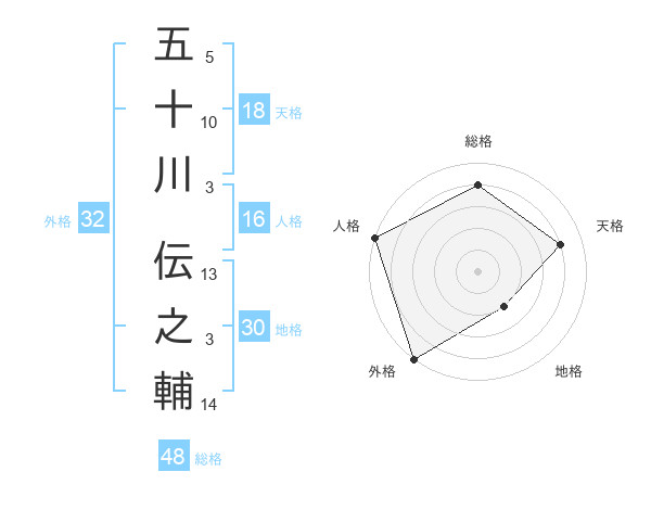 五十川 伝之輔さんを姓名の画数から五運を鑑定
