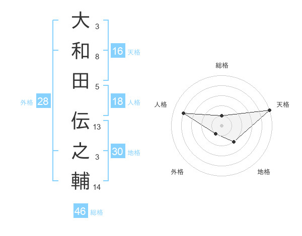 大和田 伝之輔さんを姓名の画数から五運を鑑定