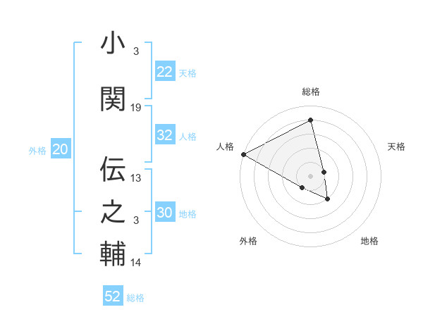小関 伝之輔さんの総格は52画の4点!