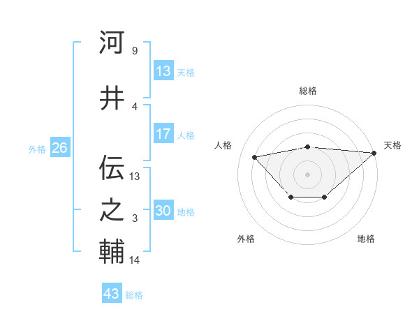 河井 伝之輔さんを姓名の画数から五運を鑑定