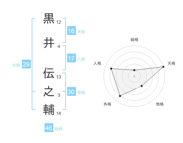 黒井 伝之輔さんを姓名の画数から五運を鑑定