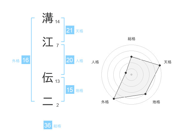 溝江 伝二さんの天格は21画の5点!
