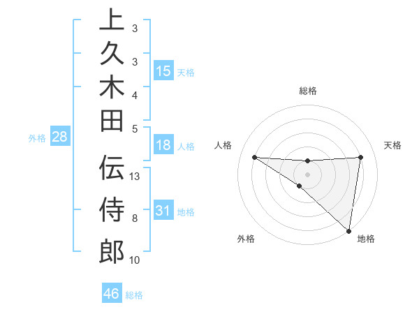 上久木田 伝侍郎さんを姓名の画数から五運を鑑定