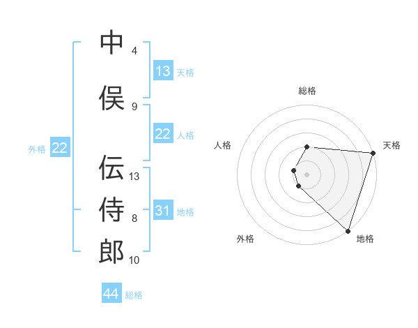 中俣 伝侍郎さんを姓名の画数から五運を鑑定