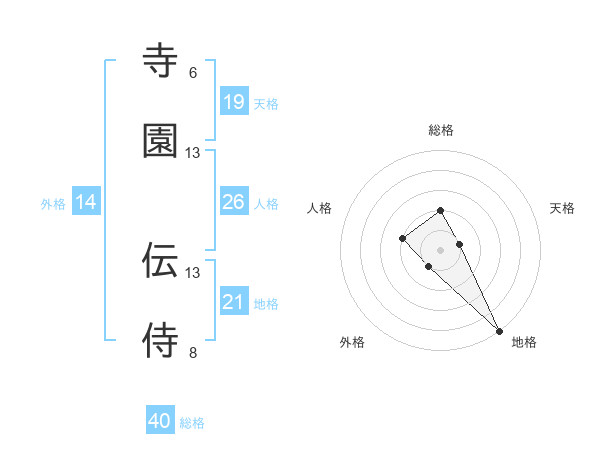 寺園 伝侍さんを姓名の画数から五運を鑑定
