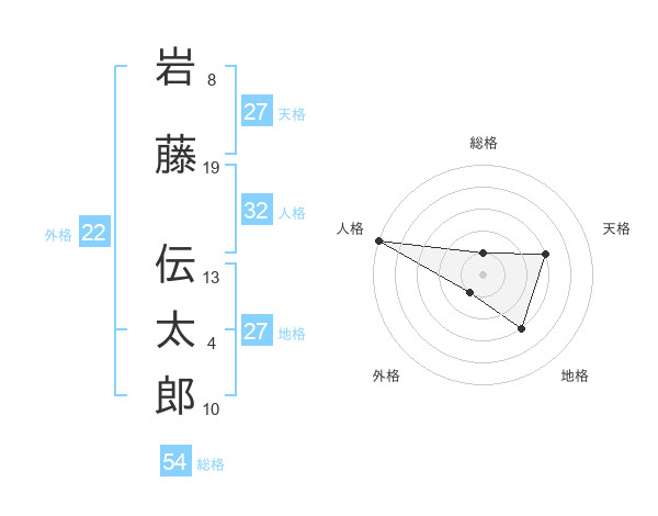 岩藤 伝太郎さんの外格は22画の1点!