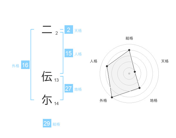 二 伝尓さんの総格は29画の4点!