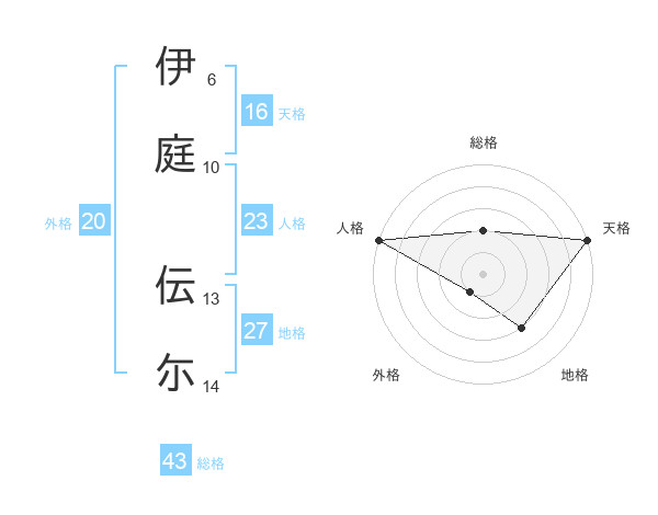 伊庭 伝尓さんの天格は16画の5点!