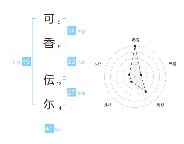 可香 伝尓さんの総格は41画の5点!