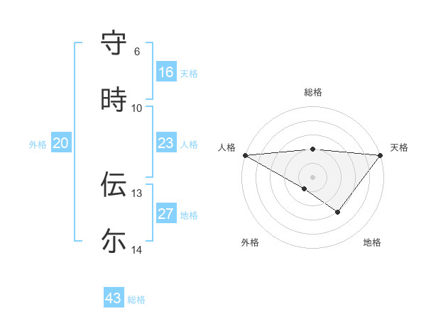守時 伝尓さんを姓名の画数から五運を鑑定