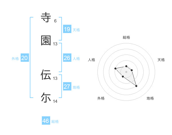 寺園 伝尓さんの天格は19画の1点!