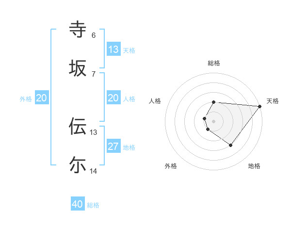 寺坂 伝尓さんを姓名の画数から五運を鑑定