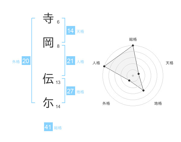 寺岡 伝尓さんの総格は41画の5点!