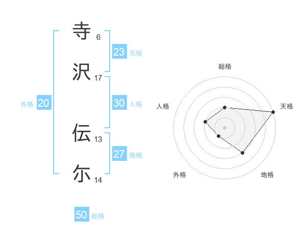 寺沢 伝尓さんの総格は50画の2点!