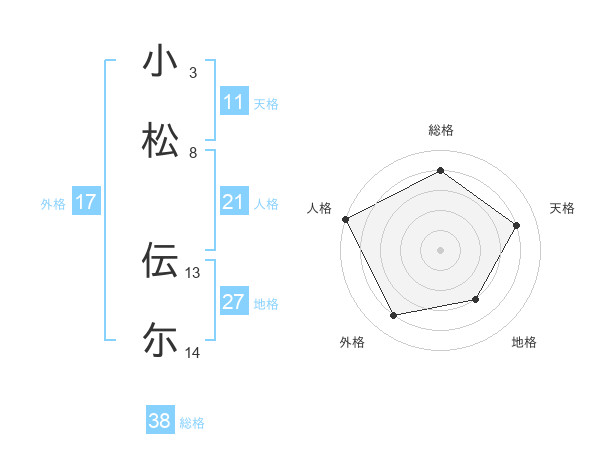 小松 伝尓さんを姓名の画数から五運を鑑定