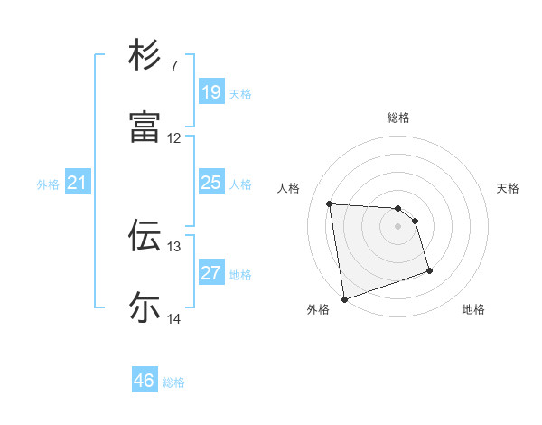 杉富 伝尓さんを姓名の画数から五運を鑑定