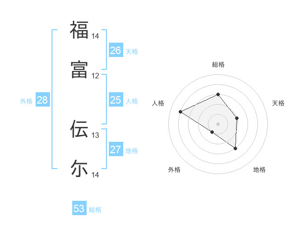 福富 伝尓さんを姓名の画数から五運を鑑定