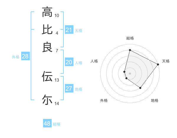 高比良 伝尓さんを姓名の画数から五運を鑑定
