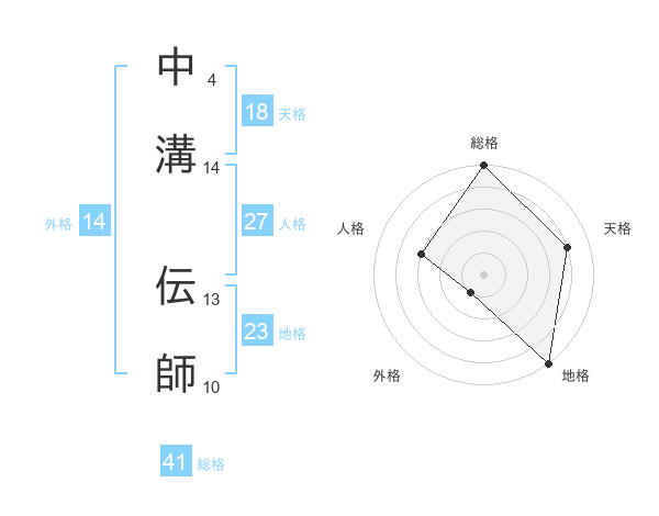 中溝 伝師さんの総格は41画の5点!