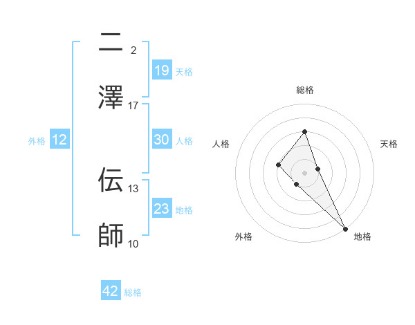 二澤 伝師さんの総格は42画の3点!