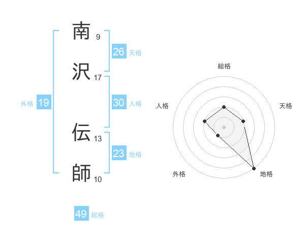 南沢 伝師さんの総格は49画の2点!