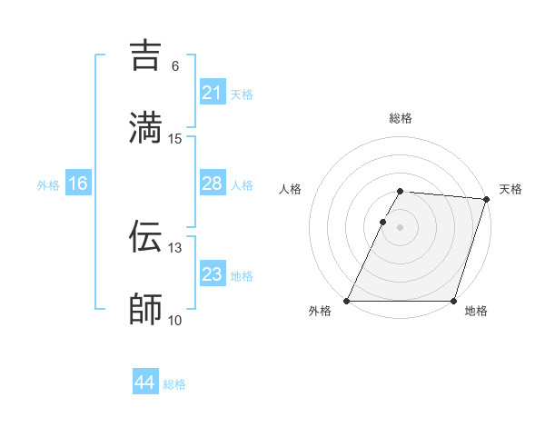 吉満 伝師さんの総格は44画の2点!
