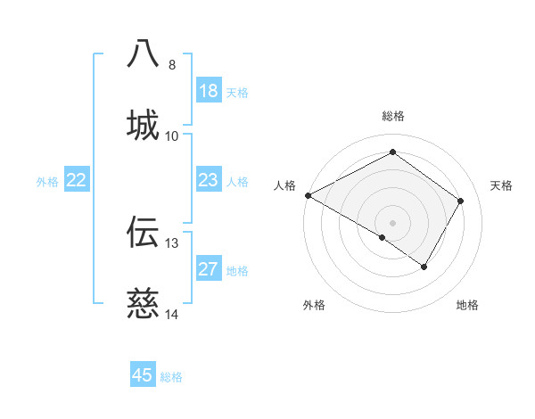 八城 伝慈さんを姓名の画数から五運を鑑定