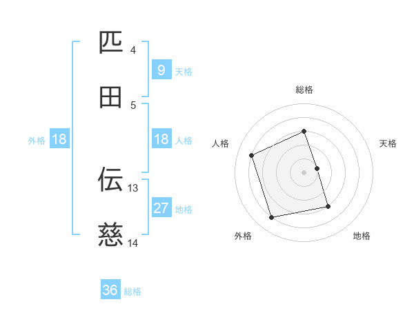 匹田 伝慈さんを姓名の画数から五運を鑑定