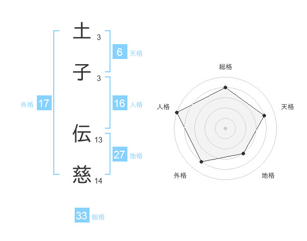 土子 伝慈さんの総格は33画の4点!