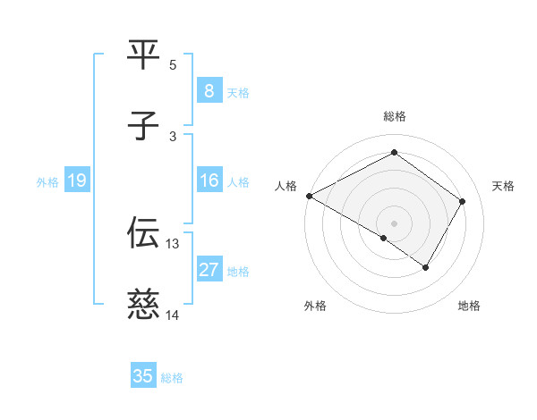 平子 伝慈さんを姓名の画数から五運を鑑定