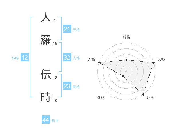 人羅 伝時さんを姓名の画数から五運を鑑定