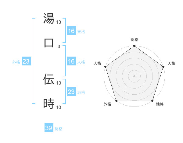 湯口 伝時さんを姓名の画数から五運を鑑定