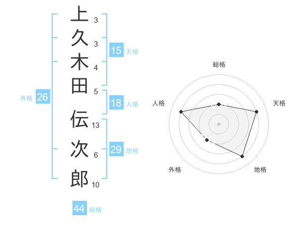 上久木田 伝次郎さんを姓名の画数から五運を鑑定