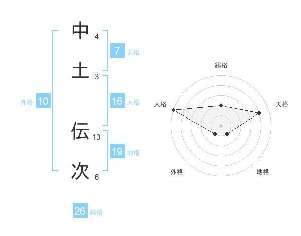 中土 伝次さんの総格は26画の2点!