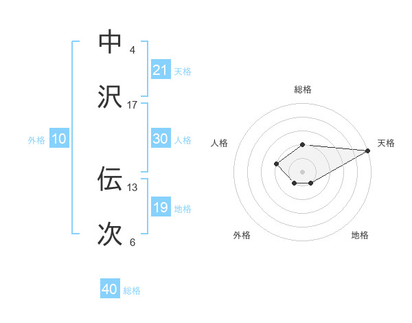 中沢 伝次さんの天格は21画の5点!