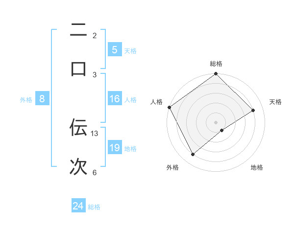 二口 伝次さんの総格は24画の5点!