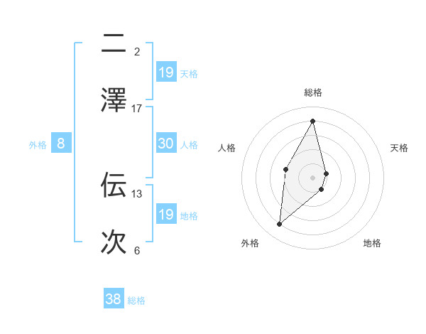 二澤 伝次さんを姓名の画数から五運を鑑定