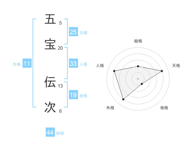 五宝 伝次さんの総格は44画の2点!