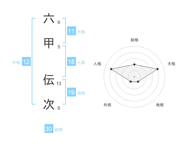 六甲 伝次さんを姓名の画数から五運を鑑定