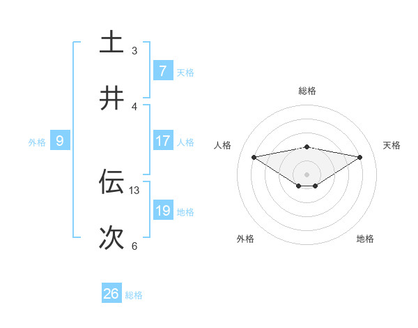 家系が持つ宿命的な運勢を表します。祖先から受け継いだ苗字ですので自分の力が及びません。家柄を象徴します。