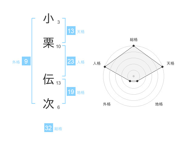小栗 伝次さんを姓名の画数から五運を鑑定