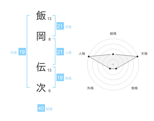 飯岡 伝次さんを姓名の画数から五運を鑑定