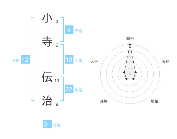 小寺 伝治さんを姓名の画数から五運を鑑定